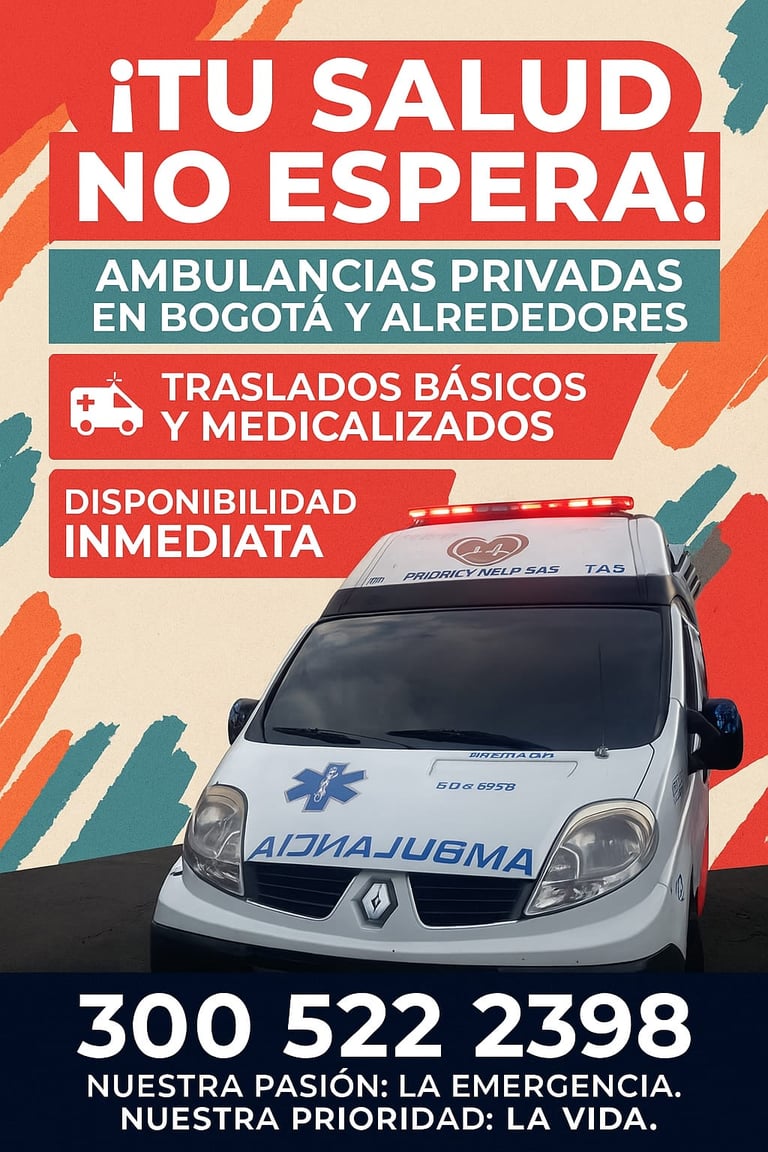 🚨 ¡La ayuda que necesitas, justo a tiempo! 🚨 Con Red de Ambulancias Privadas estás siempre seguro: ✅ Traslados básicos y medicalizados ✅ Emergencias 24/7 ✅ Cobertura en eventos 📞 Llama ya al 300 522 2398
